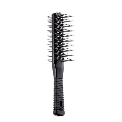 De Eurostil Double Vent Brush, ook wel bekend als tunnelborstel, in het zwart is een zeer fijne borstel voor dagelijks gebruik. De vent brush van Eurostil heeft kunststof borstel haren aan beide kanten. De ene kant heeft lange borsteltanden met 7 rijen, en de andere kant heeft korte tanden met 14 rijen. De borsteltanden zijn voorzien van noppen aan de punten, voor extra gemak tijdens het borstelen van het haar. De ventborstel is ideaal als föhnborstel. Dankzij het open design droogt het haar sneller.