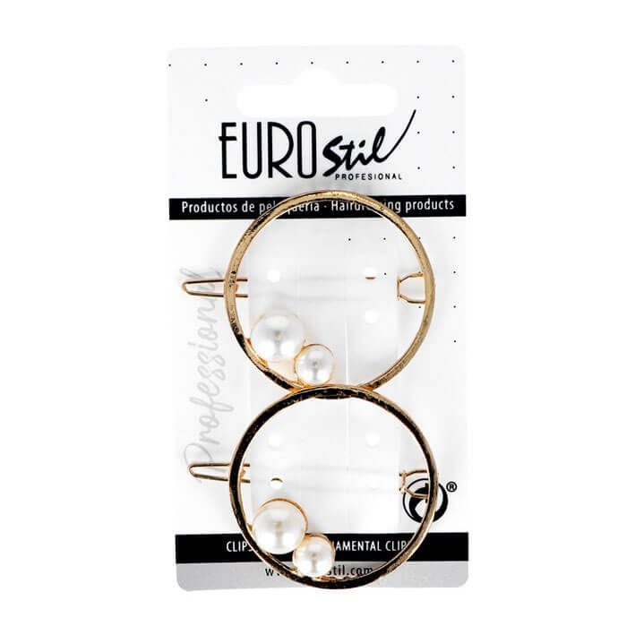 Decoratieve haarclip Eurostil Hair Jewelry Round Slide in goudkleur heeft een ronde vorm en is versierd met twee parels. Het is niet alleen geschikt voor de bruid op haar trouwdag, maar ook voor diverse bals en andere feestelijke evenementen. De clip is gemaakt van sterk, hoogwaardig materiaal en zit hierdoor stevig in het haar. De clip is eenvoudig aan het haar te bevestigen. In de verpakking zitten twee clips met prachtige juwelen.