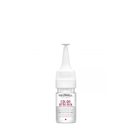 Goldwell Dualsenses Color Extra Rich lock serum is dé voedende verzorging voor dik en weerbarstig gekleurd haar. Dit gewichtloze serum is geschikt voor elk gekleurd haartype. Het verzegelt de kleur direct waardoor het geverfde haar veel langer mee gaat. Het serum bevat ColorChromaComplex met rijke frambooszaad-olie en beschermende granaatappel extracten. Hierdoor vervaagt de kleur niet en wordt het haar tegen hitte beschermd. Tevens geeft dit product een heerlijke geur aan het haar.