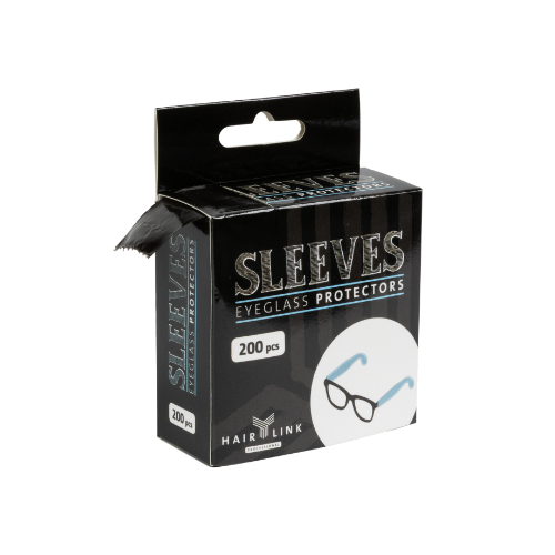 De Hair Link Sleeves zijn beschermers voor de brilpoten, wie heeft er geen probleem met de bril? Verkrijgbaar in de kleur zwart. Verpakking bevat 200 stuks brilbeschermers en zijn goed voor 100 behandelingen.