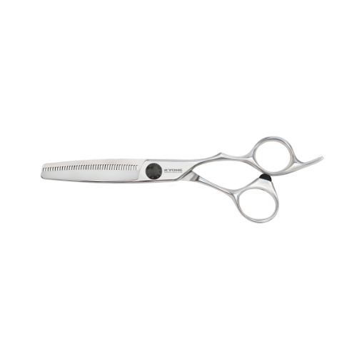 De Kyone 710T Uitdunschaar vertegenwoordigt de perfecte combinatie van schoonheid, comfort en precisie. Deze schaar, onderdeel van Kyone’s geavanceerde ergonomische collectie, is ontworpen voor professionals die prestaties en comfort eisen bij elke knipbeurt. Met 40 lasergeslepen tanden, een volledig ergonomisch ontwerp en een gedraaide duim voor een goede uitlijning van de pols, is de 710T ontworpen om keer op keer perfecte uitdun- en blendresultaten te leveren.