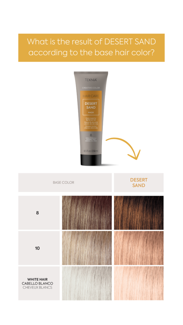 Maak kennis met de Lakme Creative Color maskers. De haarmaskers van de Creative Color-lijn verzorgen en herstellen het haar vanuit de haarvezel. De maskers herstelt de schoonheid van opgelicht haar met een rijke, gepersonaliseerde, levendige en unieke zandtint (subtiel goud, zacht beige, enz.) en zorgt voor een ongelooflijke glans.
