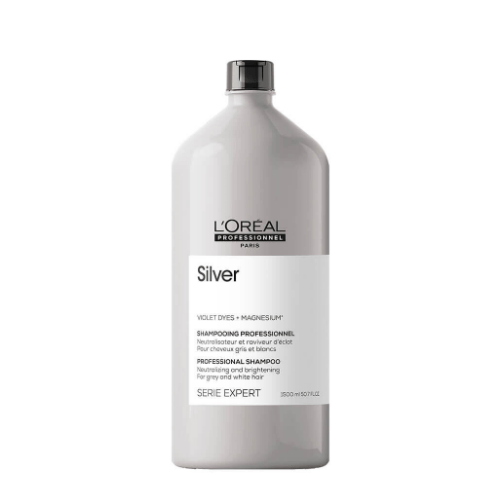 De L’Oréal Professionnel Serie Expert Silver shampoo is een shampoo speciaal ontwikkeld voor natuurlijk grijs of wit haar. Deze kleur-verhelderende shampoo neutraliseert ongewenste geel- en kopertinten waardoor haar met koelere tonen weer helemaal gaat stralen. Daarnaast zorgt de shampoo ervoor dat het haar weer glad en soepel wordt en een mooie glans krijgt. De shampoo geeft de kleur een echte opfrisser zonder opnieuw verf te gebruiken. Je ziet meteen na het eerste gebruik al resultaat. De aminozuren die toegevoegd zijn aan deze unieke formule zorgen ervoor dat na het neutraliseren van de ongewenste warme tonen, de kleur van het haar wordt behouden en de lokken niet vervagen.Daarnaast bevat dit product bepaalde aminozuren en een kationisch bestandsdeel wat ervoor zorgt dat het haar glanzend, volumineus en soepel wordt en blijft. De formule van de silver shampoo is vrij van parabenen.