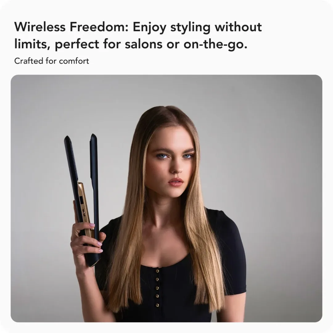 De Max Pro Aurum Cordless Straightener is een innovatieve stijltang. De stijltang is draadloos en levert krachtige, professionele prestaties, waardoor je moeiteloos prachtige looks kunt creëren. Met de Max Pro Aurum ben je niet langer gebonden aan een stopcontact. Deze draadloze technologie geeft je de vrijheid om te stylen waar je maar wilt, of je nu backstage bent bij een modeshow, in een drukke salon werkt of onderweg bent.
