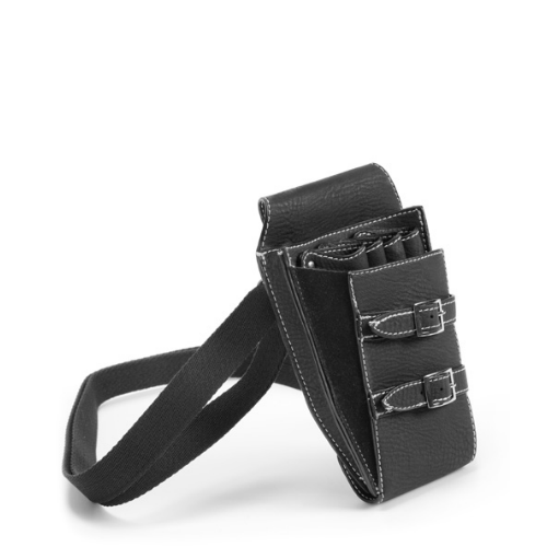 Mooie kunstlederen holster voor 4 scharen en kammen en dergelijke. Dit holster kan om je middel door middel van een verstelbare stoffen riem.