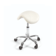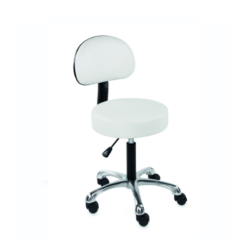 Deze Sibel Kappersfiets/kapperskruk Beauty Comfort met Rugleuning is een stijlvolle, ronde kruk op wieltjes. Deze stoel is super comfortabel met een zitgedeelte van 9cm diep van puur schuim. De stoel is bekleed met hoogwaardig PU leer in een witte kleur en voorzien van een verchroomd aluminium onderstel. De Beauty Comfort Kappersfiets heeft zwarte, kunststof zwenkwielen en is in hoogte verstelbaar van 48 tot 61 cm. De stervoet is zeer stevig en duurzaam en heeft een doorsnede van 52 cm. Deze fiets heeft een rugleuning, waardoor je langdurig comfortabel op de kruk kan zitten en werken. De rugsteun geeft net dat extra steuntje om de kappersfiets comfortabel te maken en is ook geschikt bij rugklachten.