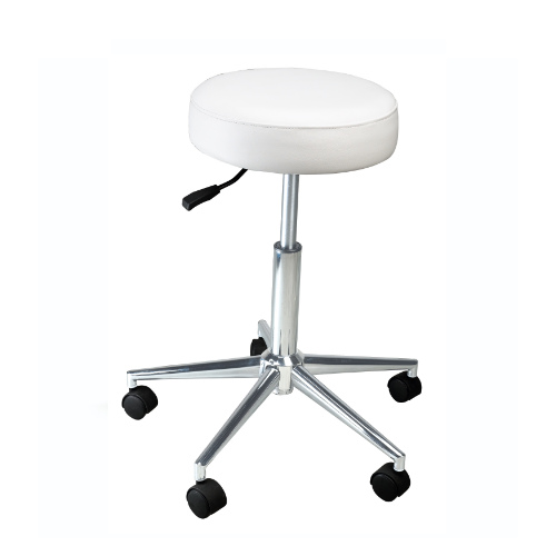 Deze hoge kwaliteit kapperskruk/kappersfiets van Sibel is bijzonder handig voor in uw praktijk! De kruk is voorzien van een chrome kruisvoet en gasveer. De zitting is gemaakt van wit kunstleer en heeft een dikte van circa 9 cm. Deze kruk is in hoogte verstelbaar van 58 – 84 cm. Het zitgedeelte heeft een diameter van circa 34 cm. De diameter van de kruisvoet is 52 cm.
