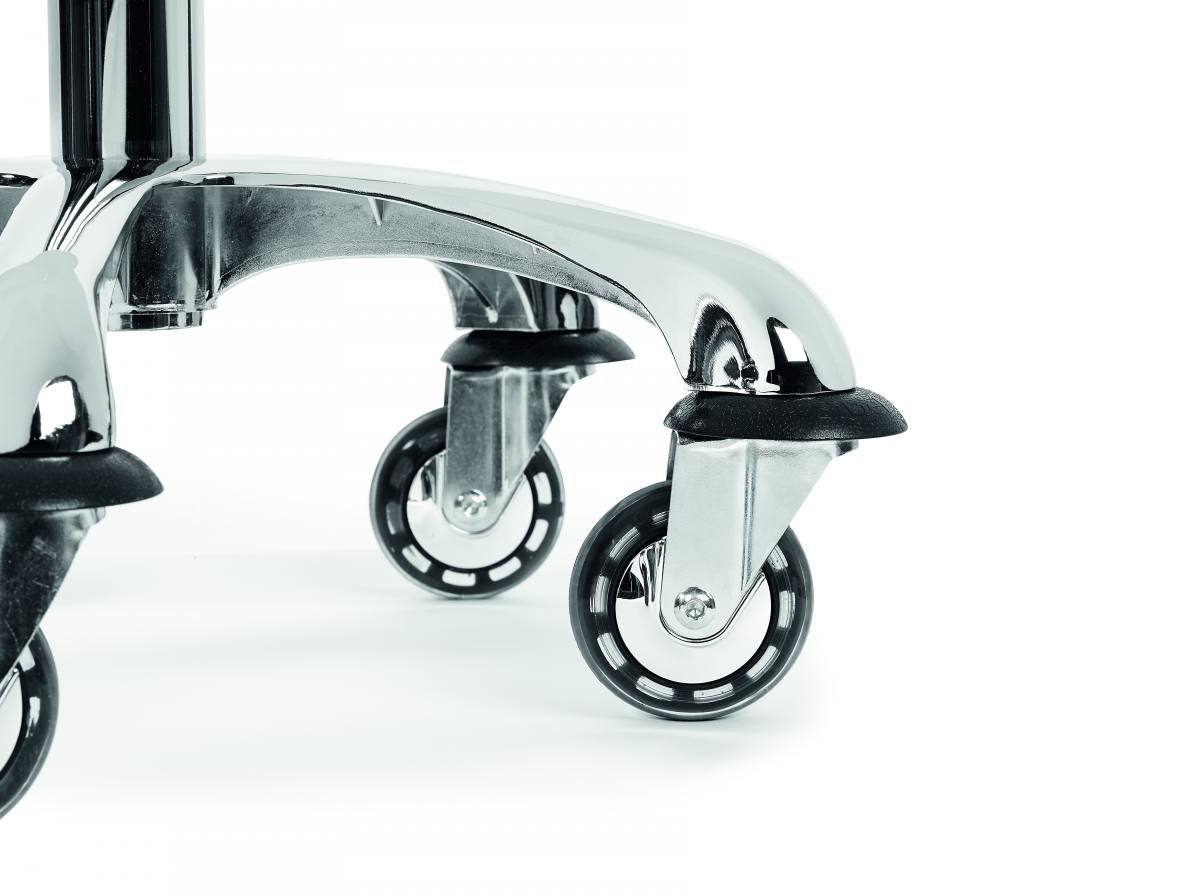 De Sibel Rollercoaster Eccentric zilver is een kappersfiets/kapperskruk in een volledig zilver design. Deze kappersfiets/kapperskruk heeft een luxueus ontwerp met verchroomde basis en handvat. De Sibel Rollercoaster Eccentric is verstelbaar in hoogte en geschikt voor elk lichaamsgewicht. Deze kappersfiets heeft haarbestendige wieltjes met verchroomde afwerking, zodat er nooit meer haartjes uit de wieltjes verwijdert hoeven te worden.