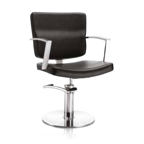 De XanitaliaPro kappersstoel Alpha is een comfortabele stoel met verchroomde armleuningen. De stoel is gemaakt van polyurethaanschuim en bekleed in elegant, onderhoudsvriendelijk zwart hoogwaardig eco-leer en zorgt voor een hoog zitcomfort. De verchroomde voet met hydraulische pomp en rem maakt een eenvoudige en optimale instelling van de zithoogte mogelijk. De Alpha past goed in interieurs met een modern, klassiek en functioneel ontwerp.